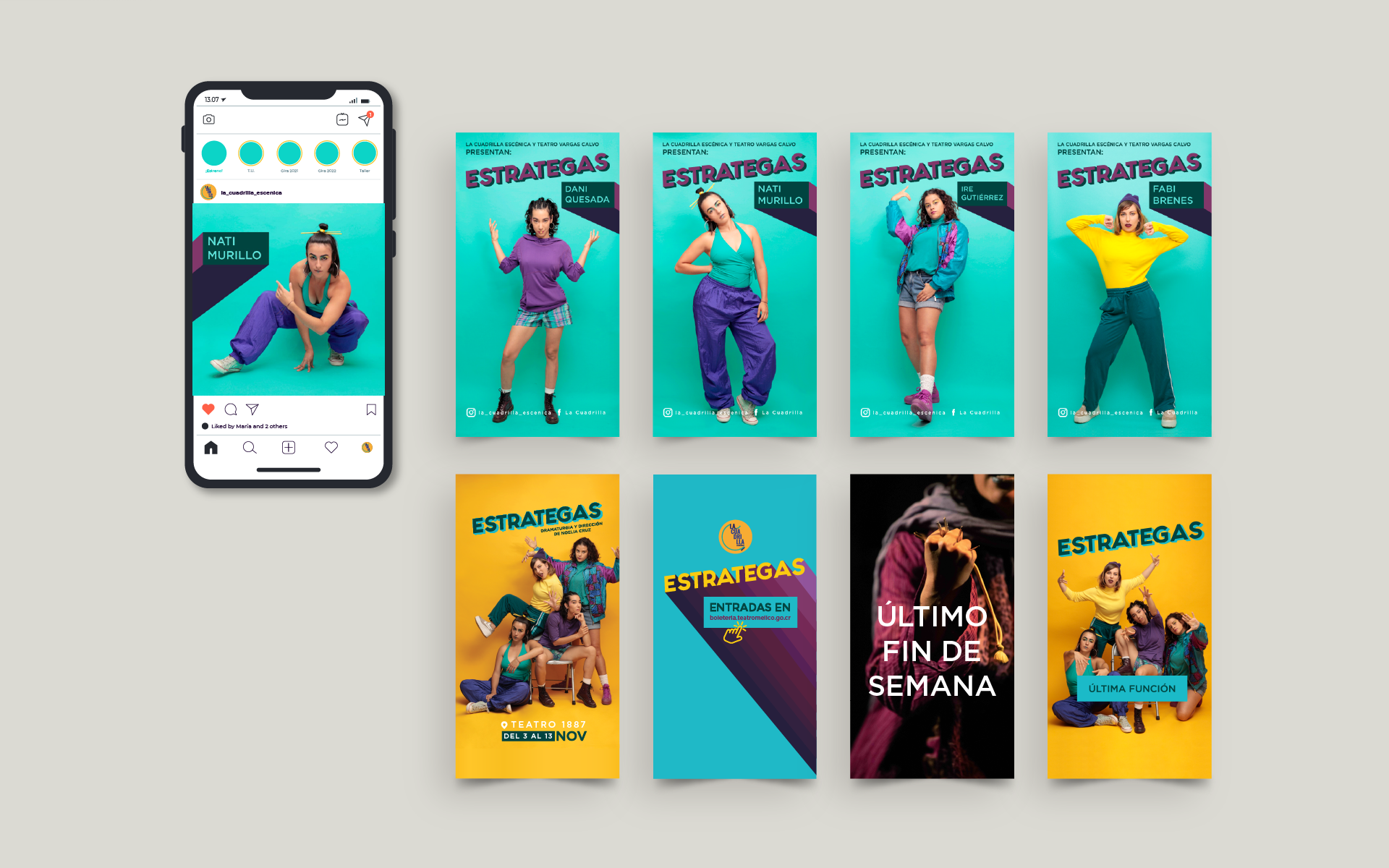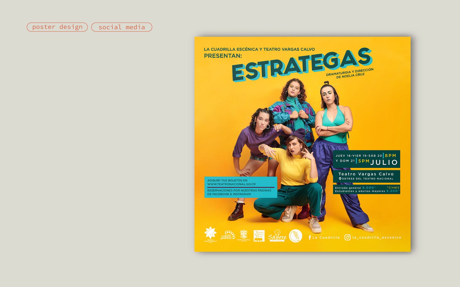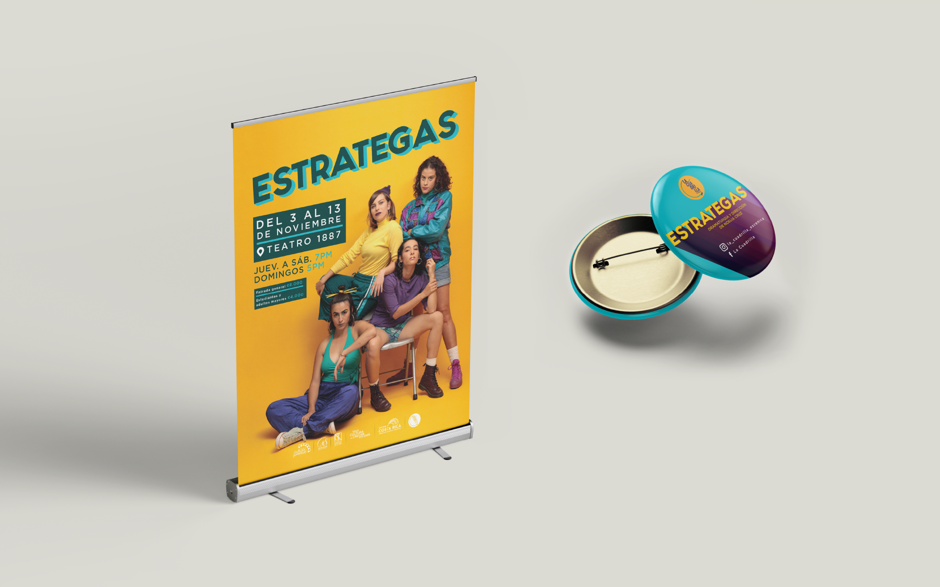 En el 2019 escribí y dirigí la obra de teatro Estrategas, de la cual realicé la línea gráfica y la creación de contenido, así como la estrategia de comunicación.