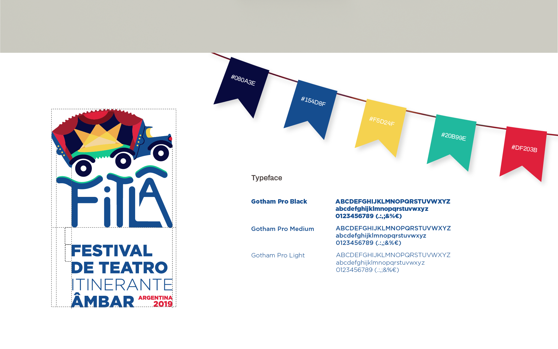 Para el logo se solicitó partir del de la edición anterior realizada en Brasil, que era una ilustración de una caravana.