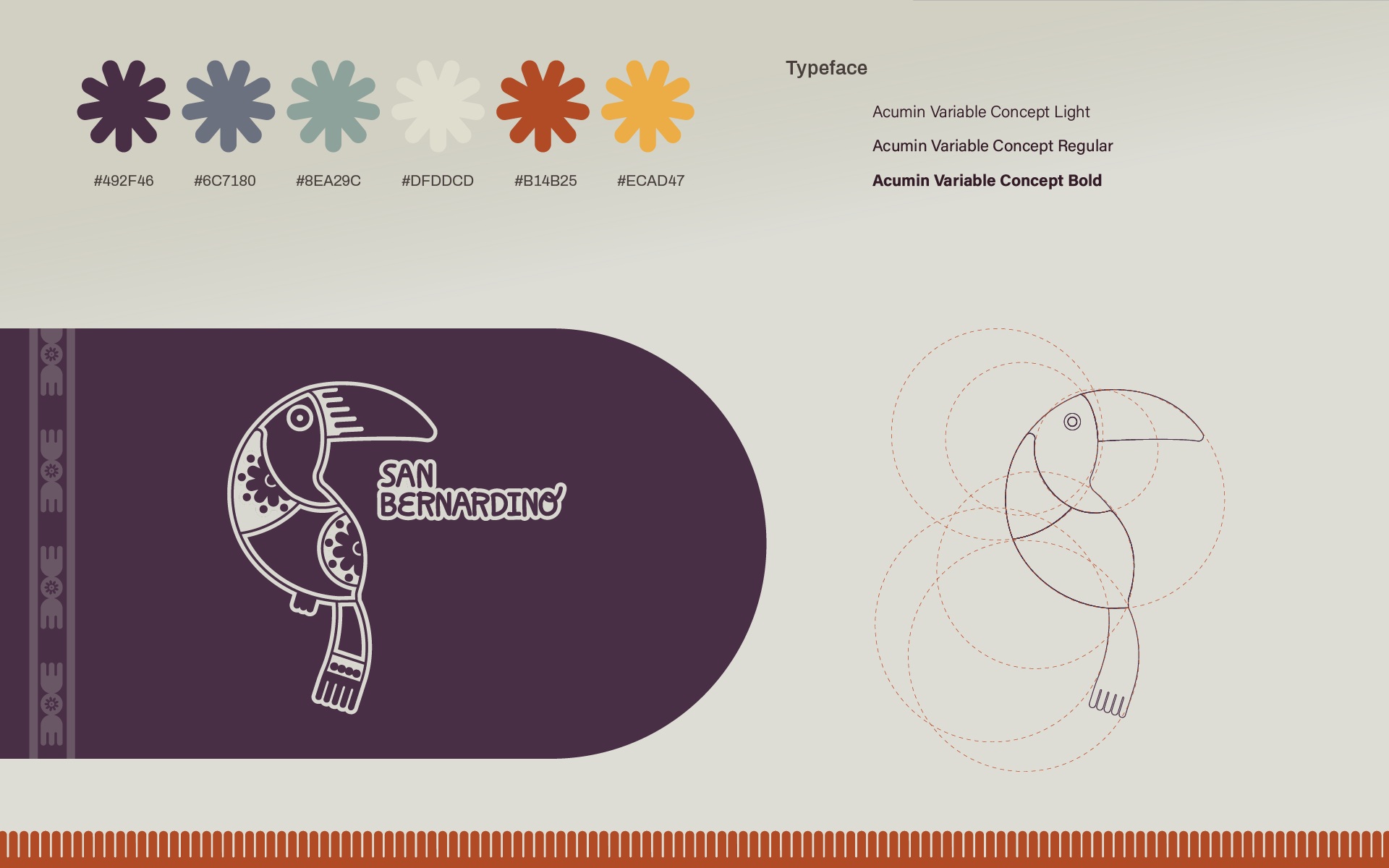 Por otro lado, se buscaba hacer alusión a la riqueza biológica, por lo que se eligió un ave que visita mucho la zona: el tucán, que también es icónico de cara a exportar la marca o comercializar para el turismo.